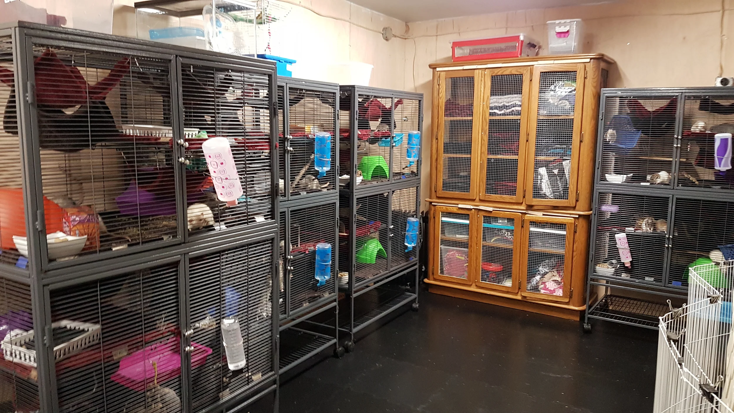 The rat room is thoroughly cleaned every 3-4 days to ensure that your rats are living in the cleanest and coziest of residences.